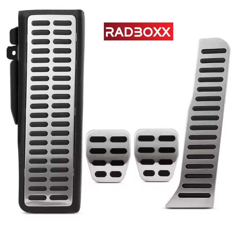 Hochwertiges 3- bzw. 4-teiliges Edelstahl-Pedalset inkl. Fußstütze für Audi, VW, Seat und Skoda Fahrzeuge mit Automatik- oder Schaltgetriebe. Für sportliches Fahrgefühl und optische Aufwertung des Innenraums.